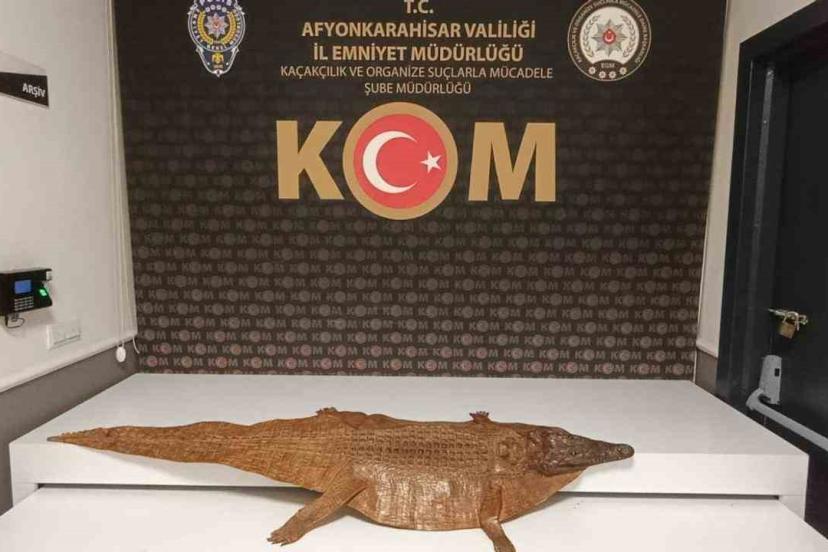 Afyonkarahisar’da polis tarafından şüphe üzerine durdurulan bir araçta timsah derisi ele geçirildi.