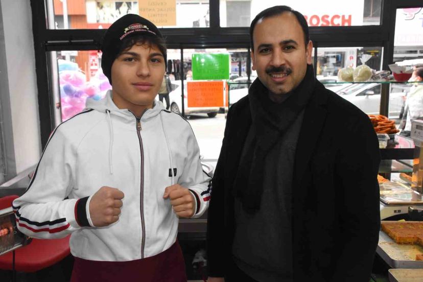 Afyonkarahisar’da baklavacıda çalışan muaytahai sporcusu 17 yaşındaki Ata Kadir Küçükekşi, bir taraftan harçlığını kazanırken bir taraftan da başarılarına yenisini eklemek istiyor.