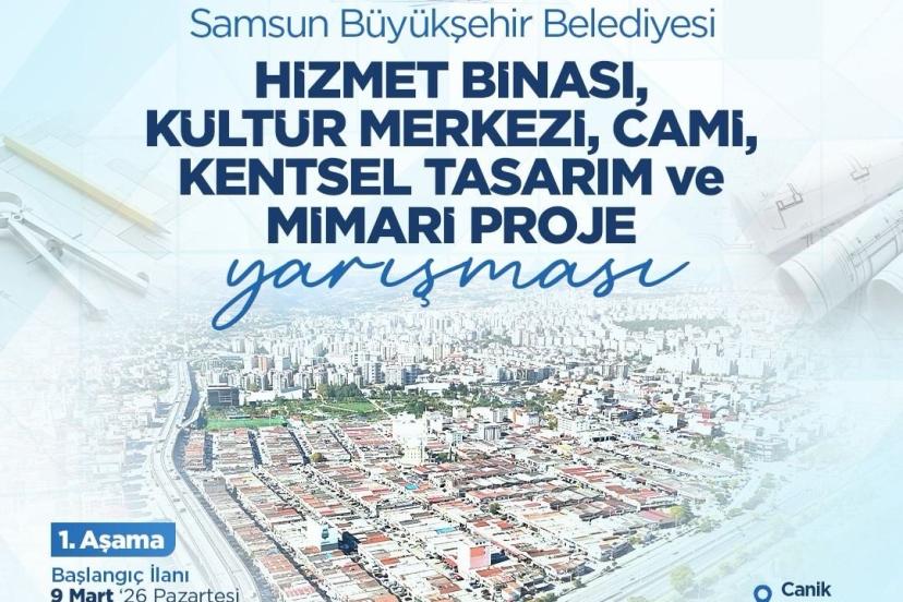 Samsun Büyükşehir Belediyesi, hizmet binası, kültür merkezi ve cami inşası için kentsel tasarım ve mimari proje yarışması düzenliyor.