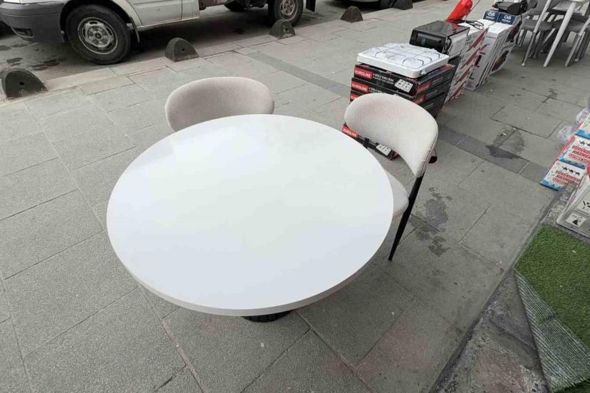 İstanbul’un Arnavutköy ilçesinde bir mobilya mağazası önünde sergilenen masa ve sandalye takımındaki iki sandalye, kimliği be...