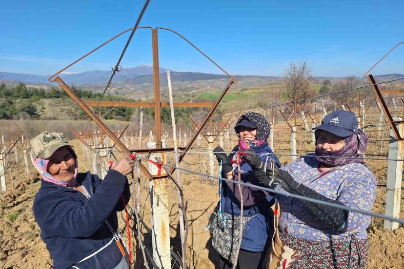 Sarıgöllü kadınlar 8 Mart’ı bağlarda çalışarak kutladı