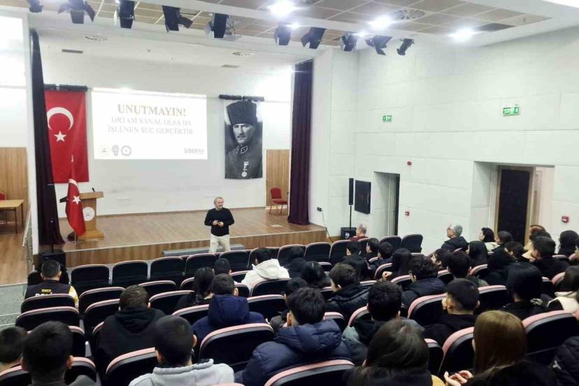 İzmir İl Milli Eğitim Müdürlüğü ve İzmir İl Emniyet Müdürlüğü Siber Suçlarla Mücadele Şubesi iş birliğiyle yürütülen eğitim 9. sınıf öğrencilerine verildi. Uzman ekipler tarafından gerçekleştirilen seminerde teknoloji bağımlılığı, siber zorbalık, bilgi kirliliği ve kişisel veri güvenliği konuları ele alındı. Öğrencilere güncel siber tehditler hakkında somut örnekler üzerinden bilgilendirme yapıldı. Oltalama, kart kopyalama ve hediye çeki dolandırıcılığı gibi yöntemlere karşı korunma yolları aktarıldı.
