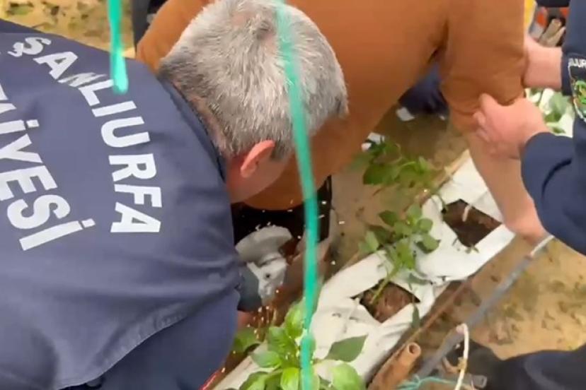 Şanlıurfa’nın Eyyübiye ilçesinde serada çalıştığı sırada kalçasına demir saplanan işçi, itfaiye ekiplerinin müdahalesiyle kurtarıldı.