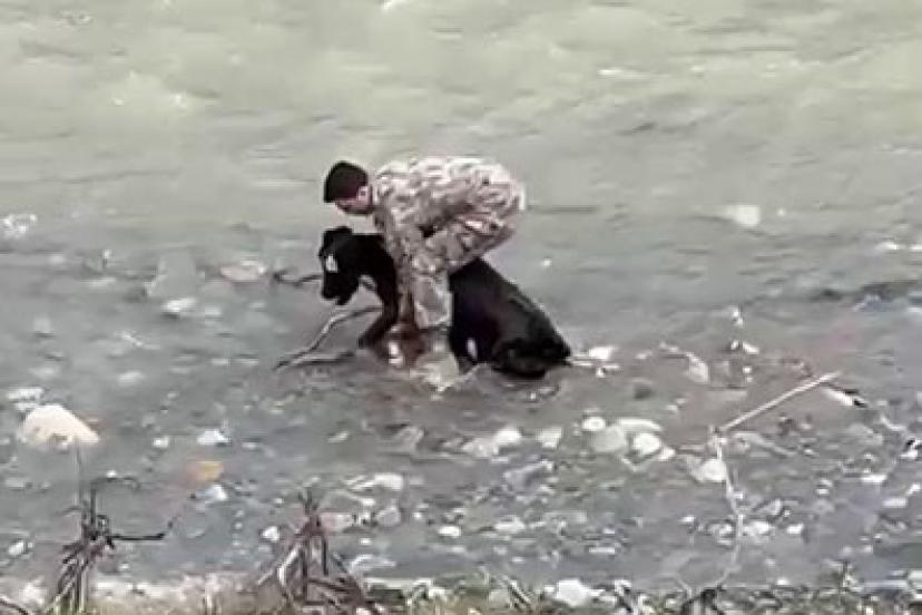Siirt’te dereye düşen buzağı polis tarafından kurtarıldı