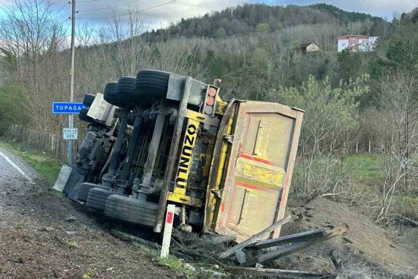 Sinop’un Ayancık ilçesinde kum yüklü kamyonun devrildiği kazada sürücü yaralandı.