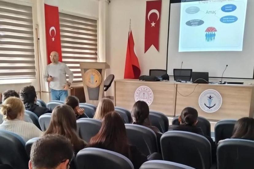 İl Milli Eğitim Müdürlüğü yetkililerinden Taner Körükmez tarafından verilen eğitimde, öğrencilere iş hayatında karşılaşabilecekleri riskler, alınması gereken önlemler, güvenli çalışma ortamının önemi ve iş kazalarının önlenmesine yönelik temel bilgiler aktarıldı. Eğitim kapsamında özellikle yiyecek ve konaklama sektöründe dikkat edilmesi gereken hijyen kuralları ile güvenli ekipman kullanımı konularına vurgu yapıldı. Gerçekleştirilen eğitimin, öğrencilerin mesleki gelişimlerine katkı sağlamasının yanı sıra iş hayatına daha bilinçli ve donanımlı bireyler olarak hazırlanmalarına destek olduğu belirtildi.
