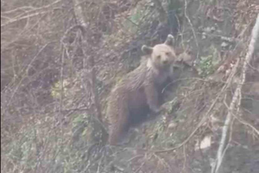 Sinop’un Ayancık ilçesi kırsalında ortaya çıkan yavru ayı, yoldan geçen vatandaşlar tarafından cep telefonu kamerasıyla kaydedildi.