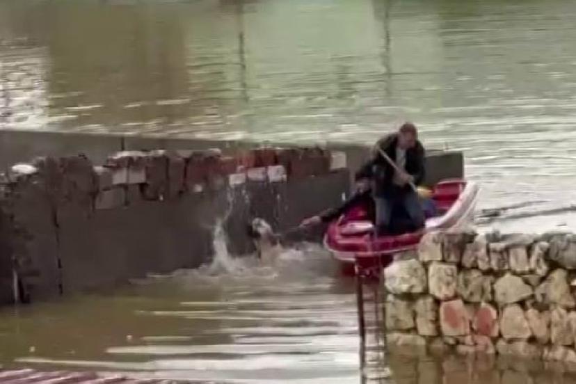 Diyarbakır’ın Kocaköy ilçesinde sağanak yağış nedeniyle meydana gelen taşkında evde mahsur kalan köpek, bota binen vatandaşların yardımıyla kurtarıldı.