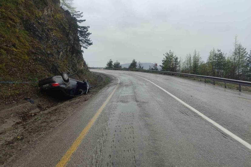 Kastamonu’nun İnebolu ilçesinde takla atan otomobilin sürücüsü yara almadan kurtuldu.