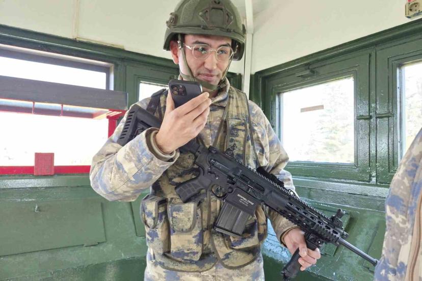 Türk Hava Kuvvetleri’nin en önemli hava üslerinden biri olan Eskişehir 1. Ana Jet Üs Komutanlığı’nda Ramazan Bayramı’nın ilk ışıkları vatan nöbetiyle karşılandı. 7 gün 24 saat esasına göre ’Gök Vatan’ın güvenliğini sağlayan Mehmetçik, Eskişehir 1. Ana Jet Üs Komutanlığı’nda birlik komutanlarıyla bayramlaştı. Nöbet kulesinde gözü ufukta, eli tetikte olan bir askere ise komutanından anlamlı bir sürpriz geldi. Birliği denetleyen komutanı, görev başındaki askeri cep telefonundan annesiyle görüştürdü. Hattın ucunda oğlunun sesini duyan anne, sevincinden ağladı. Duygu dolu anlar yaşayan Mehmetçik, telefon görüşmesi sonrası görevine devam etti.