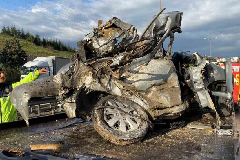 TEM’de otomobil devrilen tır dorsesinin altında kaldı: Karı-koca hayatını kaybetti