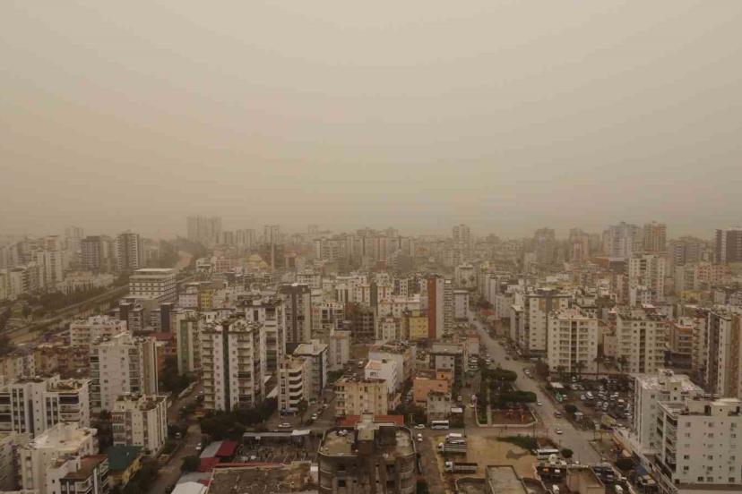 Libya üzerinden gelen Türkiye’ye giren toz taşınımı birçok şehirde olduğu gibi Mersin’de de etkili oldu. Şehir genelinde etkili olan toz taşınımı gökyüzünü neredeyse kızıla çevirdi. Toz taşınımıyla oluşan durum ise Erdemli ilçesinde dron ile görüntülendi. Drona yansıyan görüntülerde Akdeniz ve yayla bölgelerinde görüş mesafesinin yaklaşık 100 metreye kadar düştüğünü gözler önüne serdi.