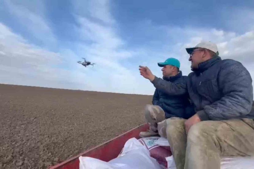 Edirne’nin Meriç ilçesine bağlı Küplü beldesinde arazide ekim yapan çiftçilerin dron ile yaşadıkları ilginç anlar kameralara yansıdı.