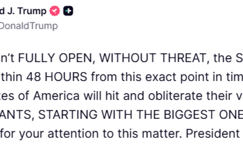 ABD Başkanı Donald Trump, İran’ın Hürmüz Boğazı’nı 48 saat içinde tamamen açmaması halinde, ülkenin enerji santrallerini hede...