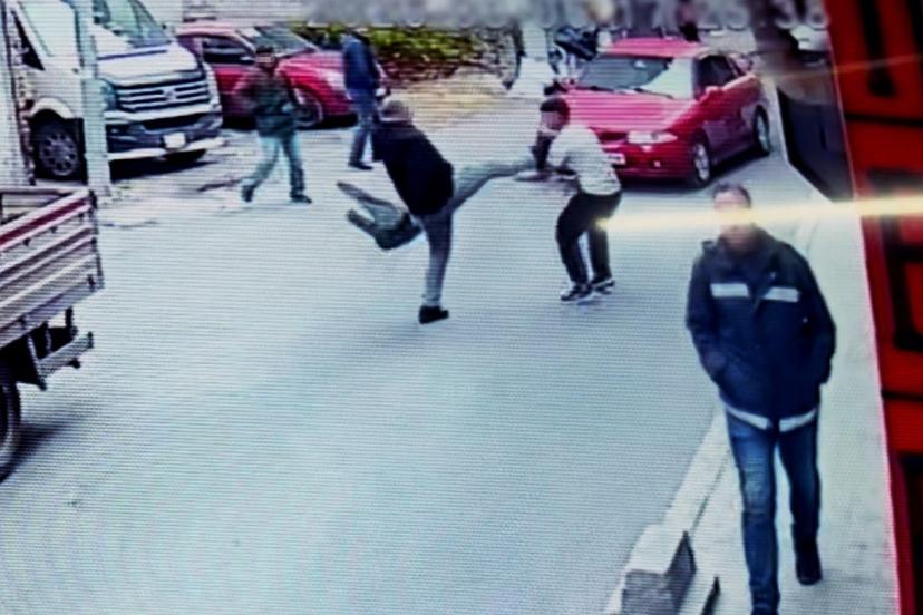 Yolda yürüyen A.T. isimli yaşlı adam, henüz bilinmeyen bir sebeple 3 şahısla tartıştı. Şahıslardan birinin A.T.’ye doğru tükürmesi üzerine kavga çıktı. A.T. ile karşı taraftaki bir çocuk birbirlerine uçan tekmeyle saldırdı.