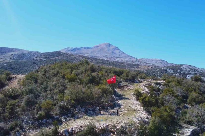 Türkiye’nin en güneyinde yer alan Suriye sınırındaki Hatay’ın Yayladağı ilçesi Bezge Mahallesi’nde 7 ayrı tepeye 7 Türk bayrağı dikildi.