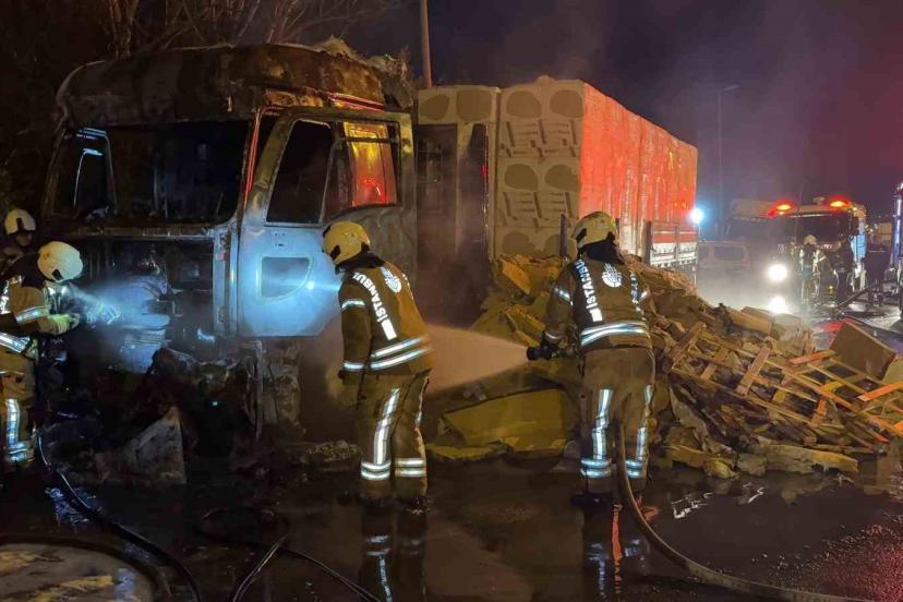 Tuzla’da E-5 Karayolu’nda seyir halindeki taş yünü yüklü bir tır alev alev yandı. İtfaiye ekiplerinin müdahalesiyle söndürülen yangın nedeniyle yolda trafik yoğunluğu oluştu.