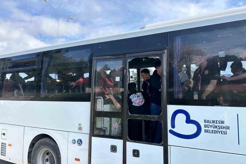 Uşak’ta Nev Sağlık Grubu Balıkesirspor’un taraftar otobüsüne taşlı saldırı