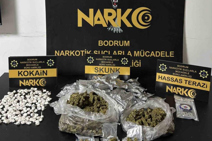 Bodrum Narkotik Suçlarla Mücadele Büro Amirliği ekiplerince uyuşturucu madde ticaretinin engellenmesine yönelik teknik ve fiziki takip başlatıldı. Şüphelilerin belirlenen adreslerde uyuşturucu madde depoladığı ve satışını gerçekleştirdiği bilgisini alan ekipler, operasyon için düğmeye bastı. Şüphelilerin ikametlerinde ve eklentilerinde yapılan detaylı aramalarda; 909 gram skunk, 133 gram kokain ve uyuşturucu tartımında kullanıldığı değerlendirilen 1 adet hassas terazi ele geçirildi. Operasyon kapsamında gözaltına alınan ve haklarında "Uyuşturucu veya Uyarıcı Madde İmal ve Ticareti" (TCK-188) suçundan işlem yapılan 3 şüpheli, emniyetteki işlemlerinin ardından adliyeye sevk edildi. Çıkarıldıkları mahkemece tutuklanan 3 şahıs, cezaevine gönderildi.
