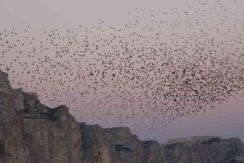 Van Kalesi’nde eşsiz bir gösteri: Sığırcık kuşları havada dans etti