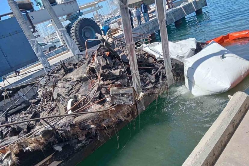 Muğla’nın Bodrum ilçesinde yanarak sulara gömülen motoryatların enkazlarının kaldırılmasına başlandı.