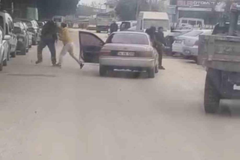 Yol ortasında yumruklu kavga kamerada