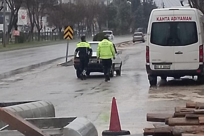 Adıyaman’da yolda kalan aracı polis ekipleri iterek sürücüye yardımda bulundu.