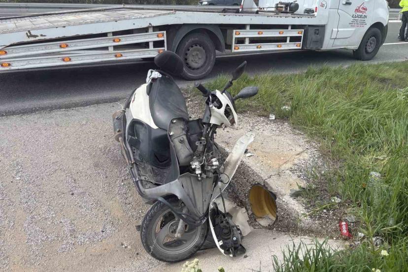 Yoldan çıkan motosikletten düşen 1’i çocuk 3 kişi yaralandı