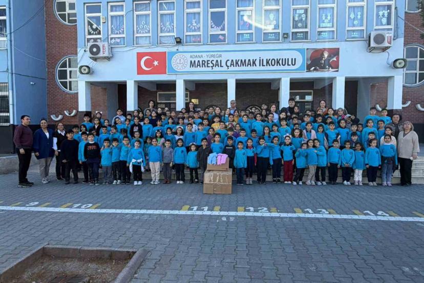 Adana’nın Yüreğir ilçesindeki Mareşal Çakmak İlkokulu öğrencileri, Ramazan ayında depremden etkilenen Kahramanmaraş’ın Nurhak ilçesindeki kardeş okullarına göndermek için atkı ördü.