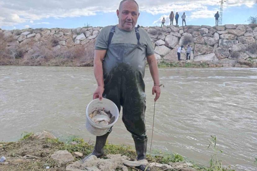 10 yıllık kuraklığın hakim olduğu çayda balık avladılar