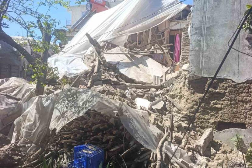 Antalya’nın Demre ilçesinde kullanılmayan 2 katlı kerpiç ev çöktü.