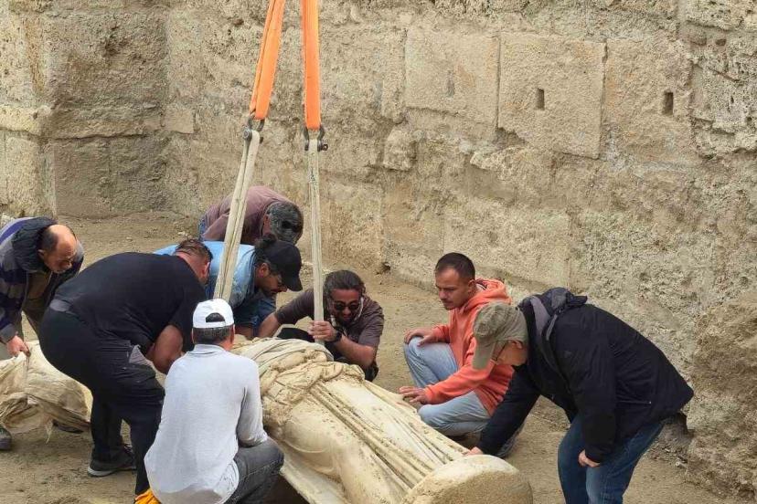 Yaklaşık 2 metre uzunluğundaki heykelin baş kısmı henüz tespit edilemezken beyaz mermerden yapılmış olması dikkat çekti.