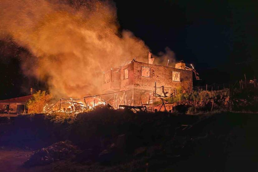 Manisa’nın Demirci ilçesinde bir ev yanarak kullanılamaz hale geldi.