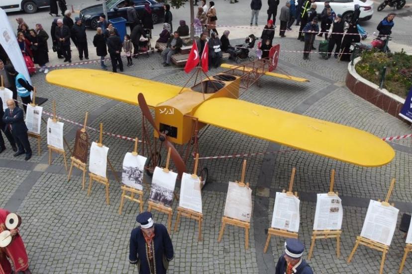 1914 yılında Edremit halkının bağışlarıyla Türk havacılık tarihine kazandırılan "Edremit" tayyaresinin aslına uygun kopyası, ...