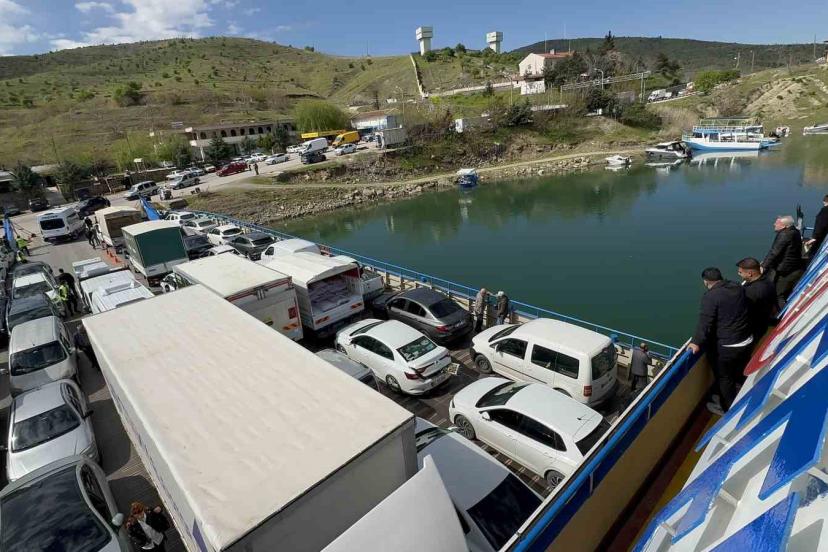 Elazığ-Pertek feribotunda metrelerce kuyruk oluştu