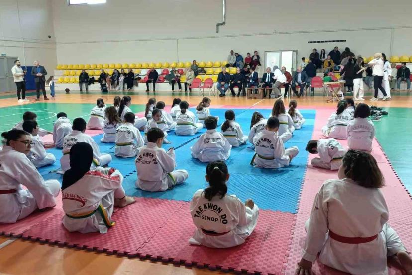 Sinop’un Erfelek ilçesinde tekvando kursuna katılan 40 öğrenci, düzenlenen kuşak sınavında bir üst seviyeye geçebilmek için ter döktü.