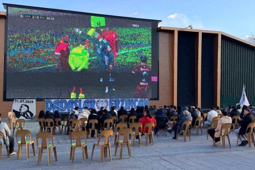 Ligin 35. haftasında Erzurum’da oynanan ve TRT Spor’dan canlı yayınlanan mücadele, Erzincan Dörtyol Meydanı’nda kurulan dev ekrana yansıtıldı. Meydanda toplanan çok sayıda vatandaş, komşu ilin takımı Erzurumspor’a tezahüratlarla destek oldu.
