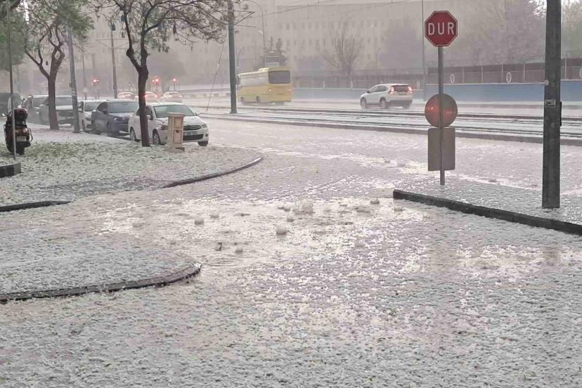 Gaziantep’te yaklaşık yarım saat etkili olan ceviz büyüklüğünde dolu yağışı hayatı felç etti.