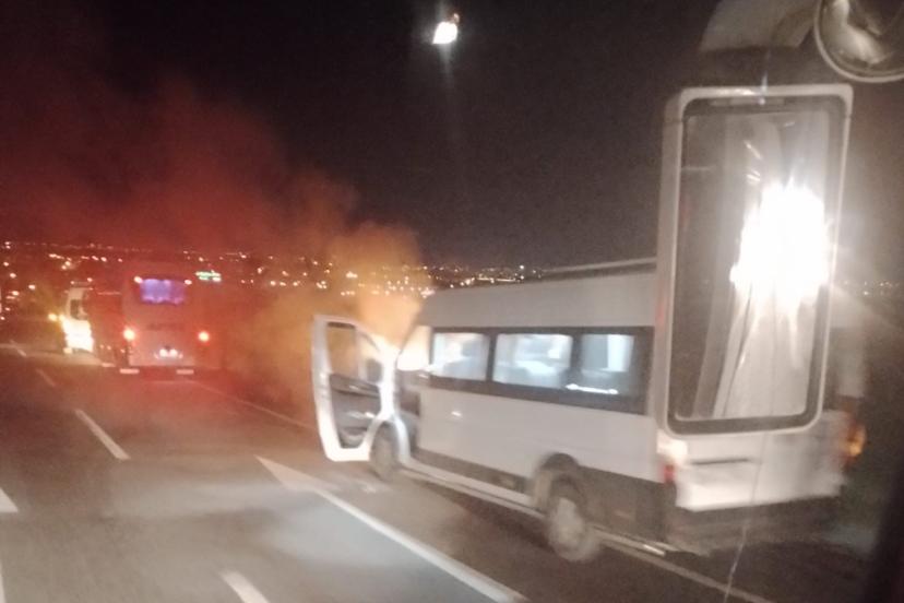İşçi servis minibüsü alev aldı
