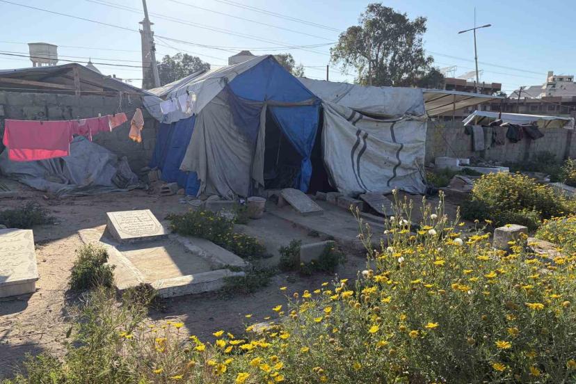 İsrail saldırıları sonrası yerinden edilen Gazzeli Halid ez-Zaanin, barınacak yer bulamayınca ailesiyle birlikte mezarlığa sığınmak zorunda kaldı.