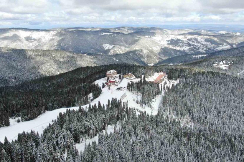 Meteoroloji Müdürlüğü’nün soğuk hava tahmininde bulunduğu Kastamonu’da dün yüksek kesimlerde kar yağışı etkili oldu. Kastamonu ve Çankırı sınırlarında yer alan Ilgaz Dağı Milli Parkı’nda da kar yağışı ara ara etkili olmaya devam ediyor. Kar yağışı sonrasında Ilgaz Dağı beyaz örtüyle kaplandı. Sabah saatlerinde güneşin yüzünü göstermesiyle birlikte Ilgaz Dağı’nın zirvesi ve ormanlık alanlarda kışı aratmayan manzaralar ortaya çıktı. Görsel şölen sunan Ilgaz Dağı, havadan görüntülendi.