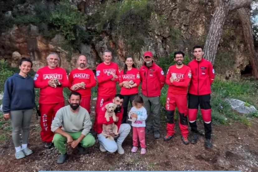 Antalya’nın Kumluca ilçesinde karavanları ile kamp yapan ailenin Latte isimli köpeğinin 6 yavrusu yağmurdan ıslanmamaları için bırakıldıkları alanda fark edilmeyen bir yarığa düştü. Ailenin sosyal medyadan yardım çağrısına yetişen arama kurtarma ekipleri 6 yavruyu yaklaşık 20 metrelik ve bir insanın girebileceğinden dar alandan film gibi operasyonla kurtardı.