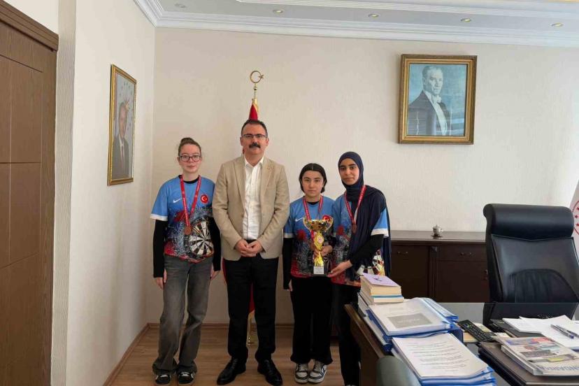 2025-2026 dönemi Okul Sporları faaliyetleri kapsamında Burdur’da gerçekleştirilen Bölge Finallerinde dereceye giren Zafer Ortaokulu Yıldız Kız Dart Takımı, İlçe Milli Eğitim Müdürü Mehmet Madran ile birlikte Sultanhisar Kaymakamı Ali Ekber Ateş’i makamında ziyaret etti.