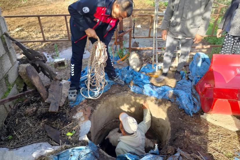 Hatay’da kuyuya düşerek mahsur kalan buzağı itfaiye ekiplerinin zorlu çalışmasıyla kurtarıldı.