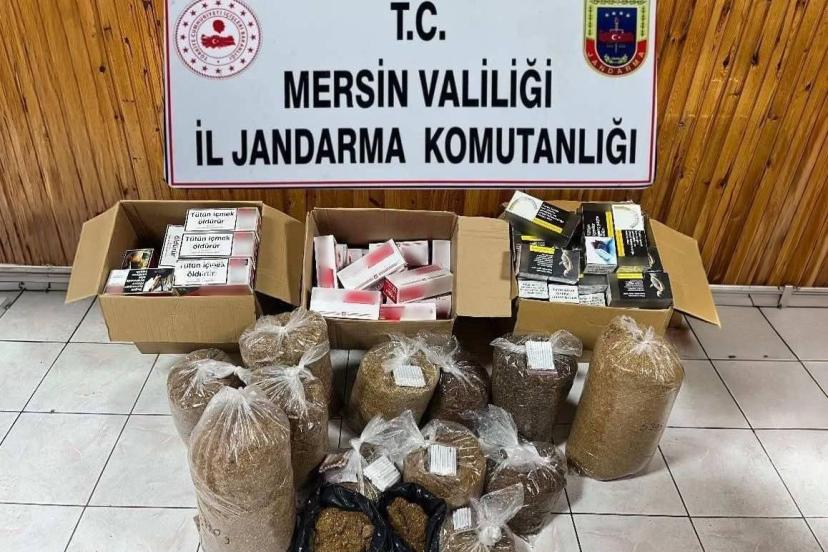 Mersin’de jandarma ekiplerinin düzenlediği operasyonda 2 şüpheli yakalanırken, binlerce makaron ve 40 kilogram kıyılmış tütün ele geçirildi.