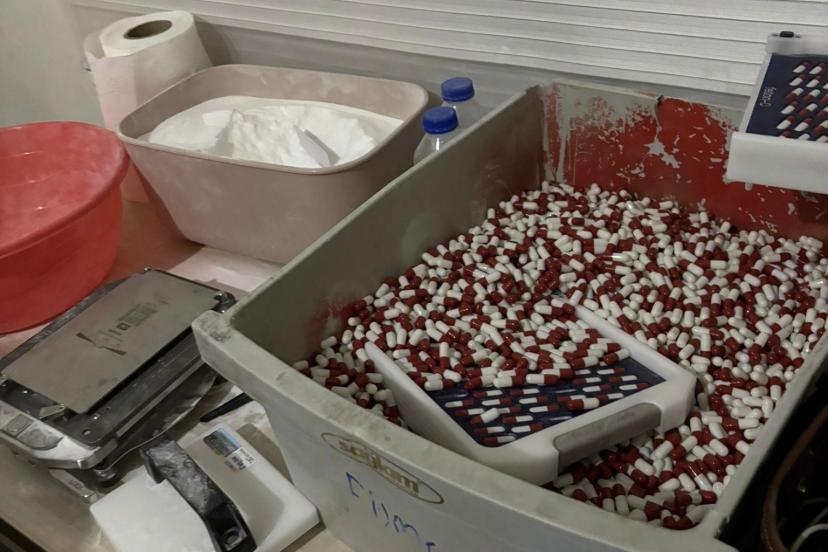 Mersin İl Emniyet Müdürlüğü Narkotik Suçlarla Mücadele Şube Müdürlüğü ile Mezitli İlçe Emniyet Müdürlüğü ekiplerince, uyuşturucu madde ticareti ve kullanımını engellemeye yönelik yürütülen çalışmalar kapsamında Yenişehir ilçesinde bir adreste sentetik ecza hap üretimi yapıldığı bilgisine ulaşıldı. Belirlenen adrese düzenlenen operasyonda, 65 kilo 250 gram sentetik ecza ham maddesi (pregabalin), 45 bin 482 adet doldurulmuş kapsül, 135 bin 100 adet boş kapsül, bin 850 adet ilaç kutusu, 25 gram metamfetamin, 810 adet beyaz renkli hap kutusu, 420 adet kapak, 2 adet ilaç basım makinesi, 1 adet mikser ile 708 blister halinde 9 bin 912 adet sentetik ecza ele geçirildi.