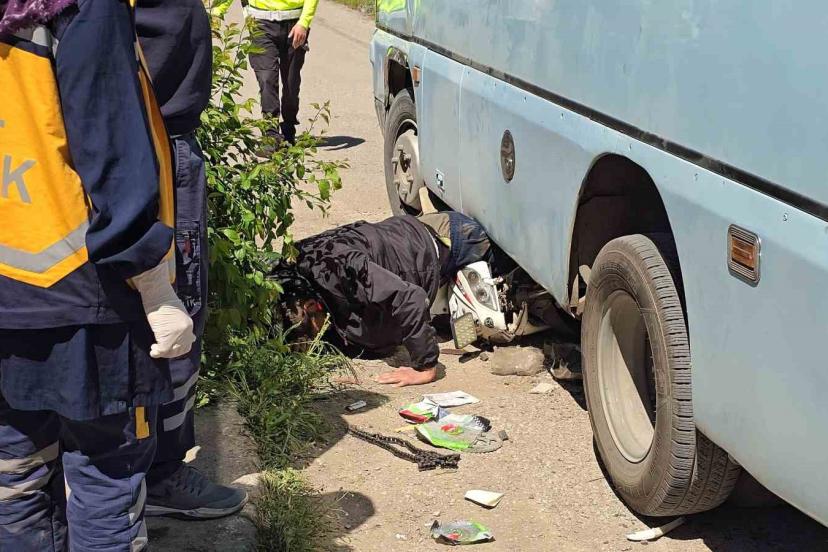 Minibüsün altında can pazarı: Motosikletliyi ekipler zamanla yarışarak kurtardı