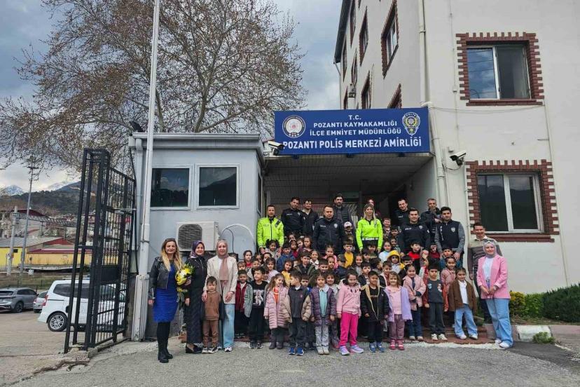 İlçedeki Fatma Nilgün Kayar Anaokulu öğrencileri, Türk Polis Teşkilatı’nın 181. kuruluş yıl dönümü dolayısıyla Pozantı İlçe Emniyet Müdürlüğü’nü ziyaret etti. 60 anaokulu öğrencisi ve öğretmenlerini, Pozantı İlçe Emniyet Müdürü Mustafa Atcı ile emniyet personeli karşıladı.