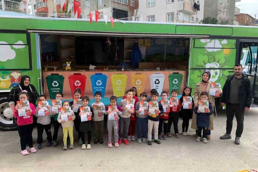 Minik öğrencilere gezici araçla sıfır atık dersi