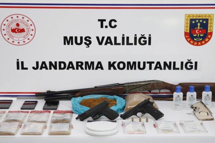 Muş’ta jandarma ekiplerince uyuşturucu madde imal ve ticareti yapan şüphelilere yönelik düzenlenen operasyonda 2 şüpheli tutuklandı.